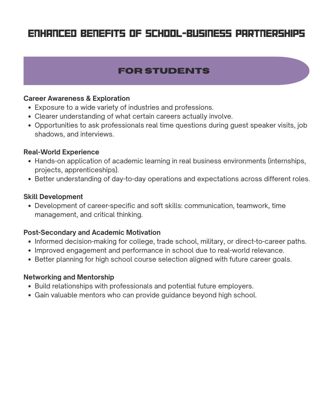 Bridge the gap between school and business through ProjectBased Learning and Internships.
